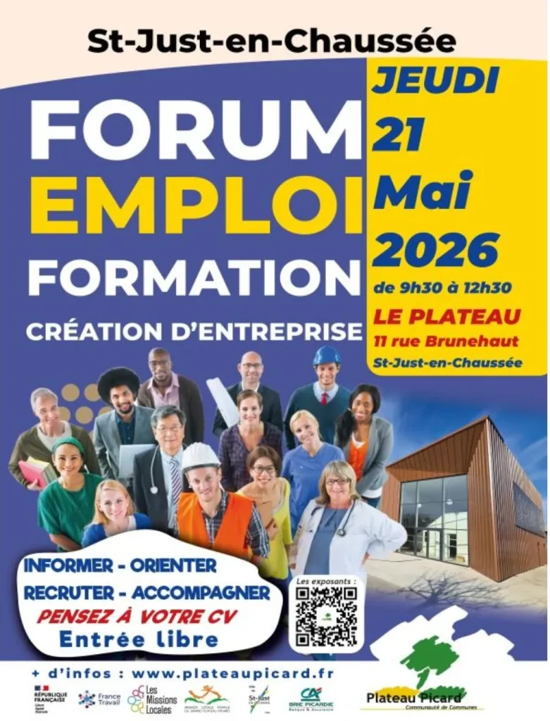 Le forum de l’emploi de Saint Just en Chaussée : A la recherche d’un emploi, d’un nouveau projet.. Venez rencontrer les intervenants sur le forum le 21 mai. Plus d’information sur le site de la communauté de commune ou sur leur page Facebook.